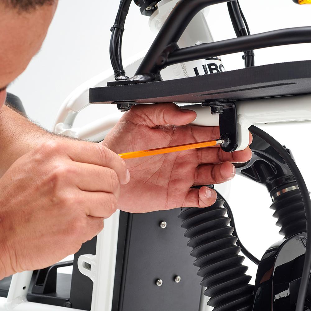 The strong alloy frame has 19 accessory lugs strategically placed across the frame to provide maximum flexibility and adaptability. These allow you to secure and carry what you need (payload 150kg | 331lb). Fit UBCO accessories, from bags to decks, fairings and bike racks, all available online. Or create your own attachments with the adapter pack.