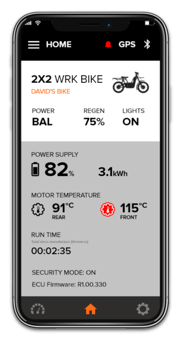 Connect and communicate directly with the bike’s onboard vehicle management system via the handy UBCO App. Take control with real time performance for your bike and customise your riding experience.