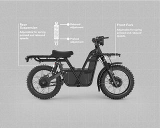 With around 80km (50 miles) in off road conditions you can run all your essential errands or head out into the wild. Range is affected by variables such as weight, incline, and terrain.