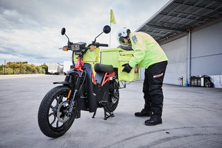 The rear-wheel hub-drive DUTY is practical, robust, and easy to ride. With a top speed of 95kph/60mph, a class leading carry capacity, and extra long range, this bike is built for duty.