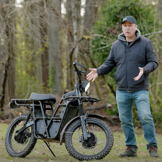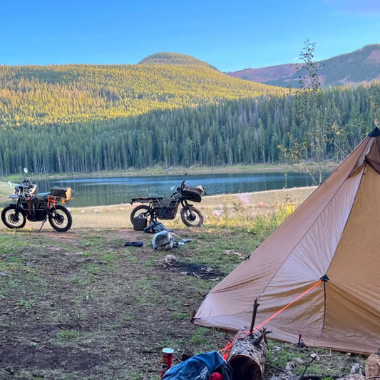 UBCO Electric Bikes were made for ranch work, but their capabilities translate seamlessly to off roading and backcountry camping. They’re nimble and handle well, dead simple to operate, and a lot of fun.
