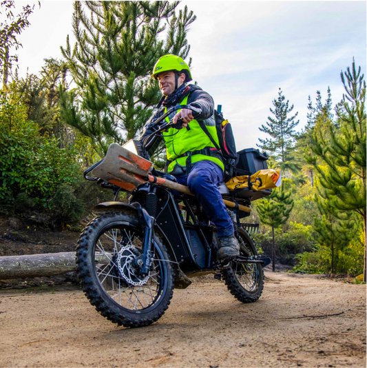 Rotorua Trails Trust use UBCO 2X2 electric motorbikes to maintain the network of superb mountain biking, walking, and equestrian tracks in the Whakarewarewa Redwoods Forest in Rotorua, New Zealand.
